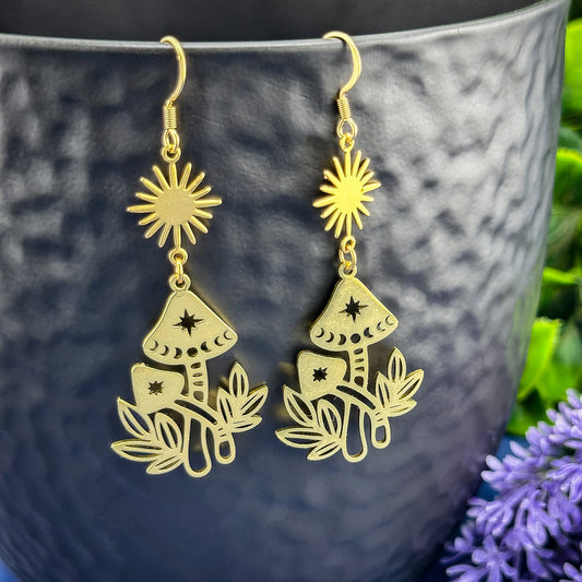 Golden Mushroom Sun Earrings