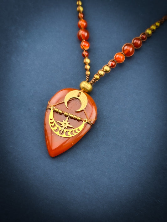 Carnelian Tear Drop with Golden Moons & star