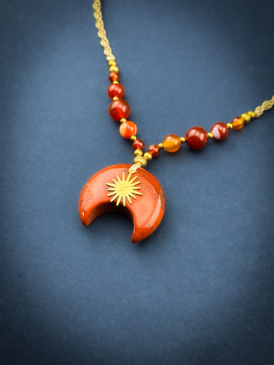 Red Jasper Moon with Brass Sun